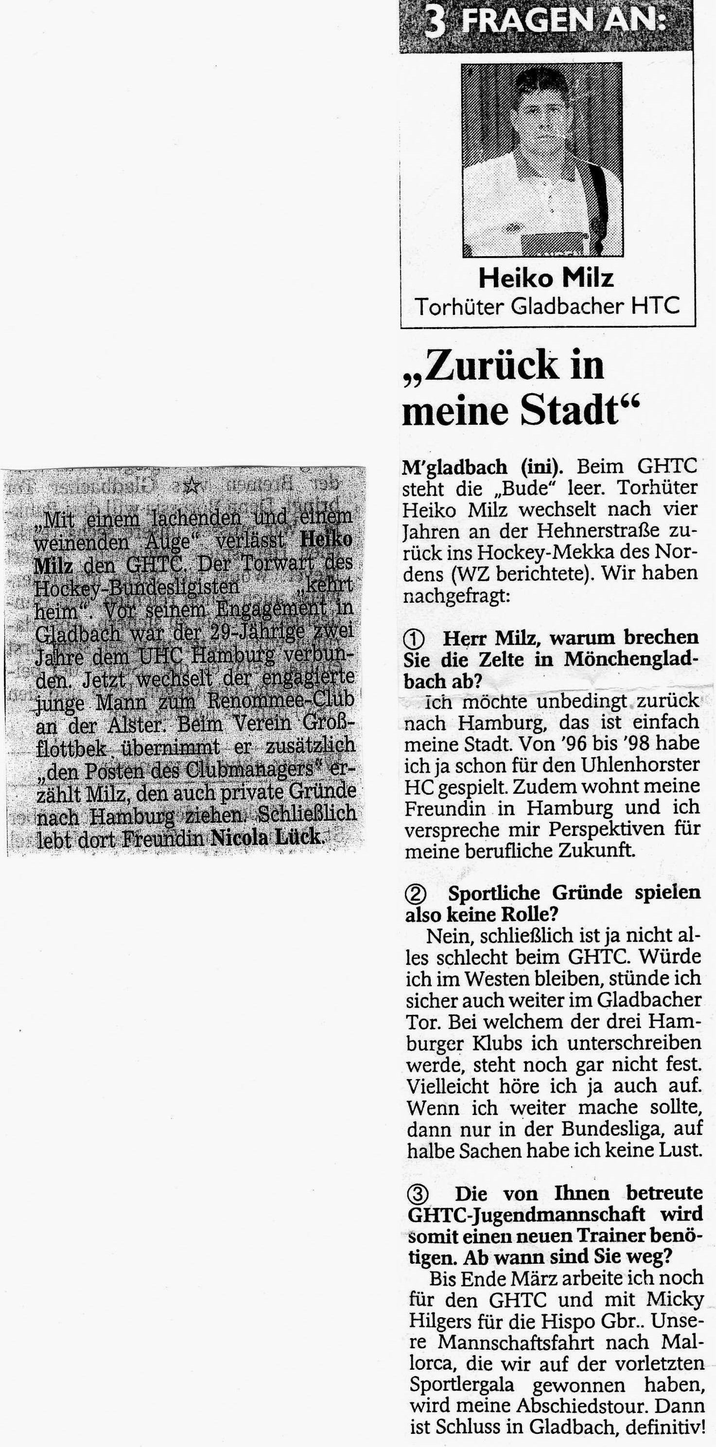 Die Gladbacher Presse über Heiko Milz